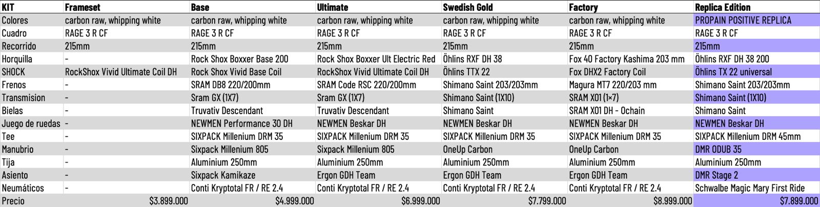 Bicicleta Propain Rage 3 R CF Team Replica edición limitada - a pedido