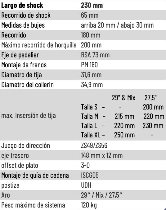 El tamaño del cuadro contribuye de forma significativa al rendimiento de la bicicleta y, sobre todo, al disfrute de la conducción. Utiliza la tabla para seleccionar la talla de cuadro que necesitas. Si se encuentra entre dos tallas, sólo tiene que decidir si le gusta una conducción lúdica o suave. Elija la talla de cuadro más grande para una conducción suave y la talla más pequeña para una conducción juguetona.